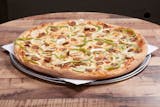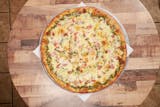 Grilled chicken, bacon, tomatoes, garlic, mozzarella, parmesan & Caesar dressing.
